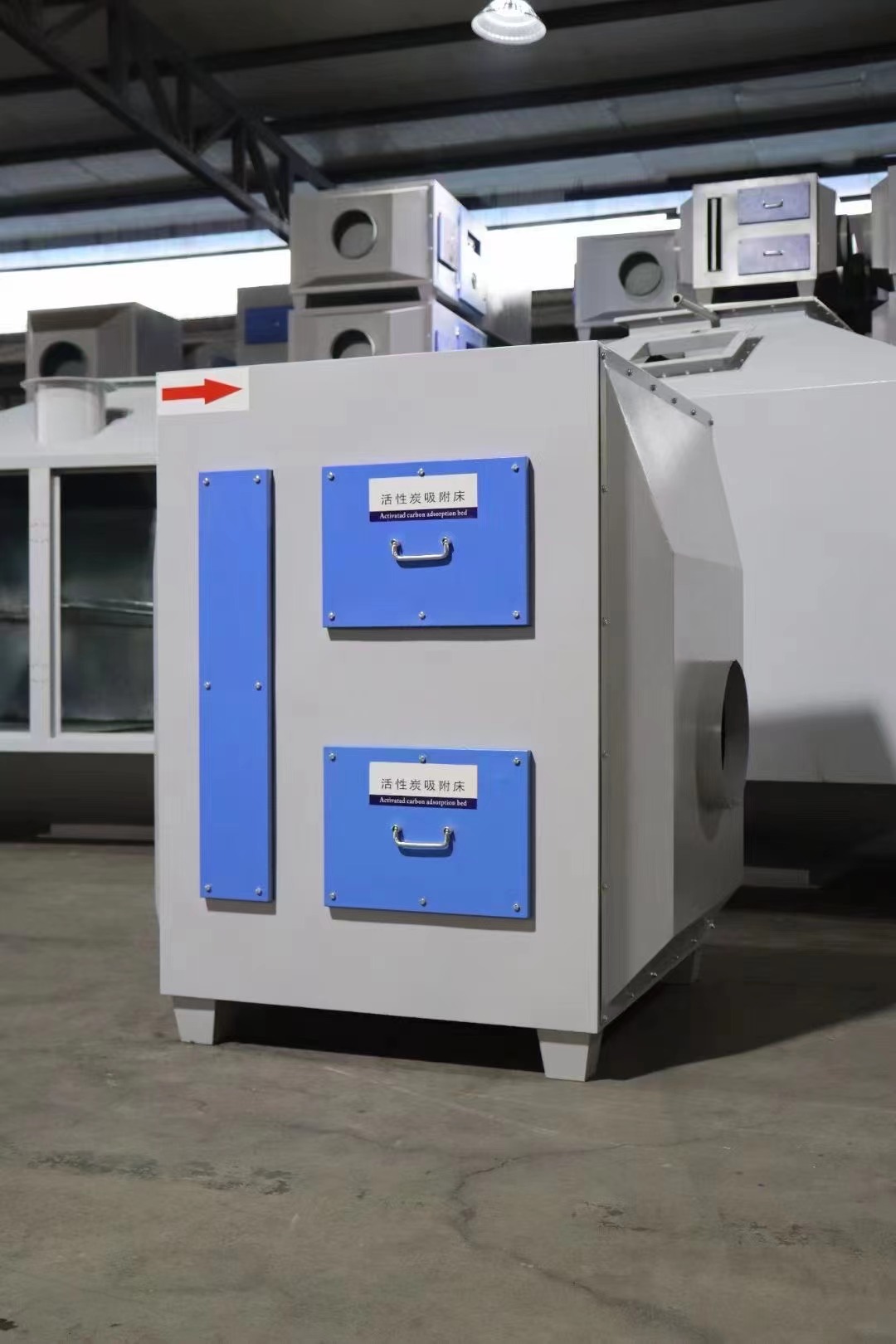 活性炭吸附箱是一種過(guò)濾吸附有機廢氣的環(huán)保裝置?;钚蕴课较淇梢杂刹讳P鋼、碳鋼、PPB等材料制成。本發(fā)明具有吸附效率高、適用范圍廣、維護方便、能夠處理各種混合廢氣的優(yōu)點(diǎn)?;钚蕴烤唧w具有去除苯、TVOC等有害氣體和消毒除臭的功能?;钚蕴课剿F在廣泛用于處理電子原廠(chǎng)生產(chǎn)、電池(電池組)生產(chǎn)、化工、醫藥、食品等有機廢氣。