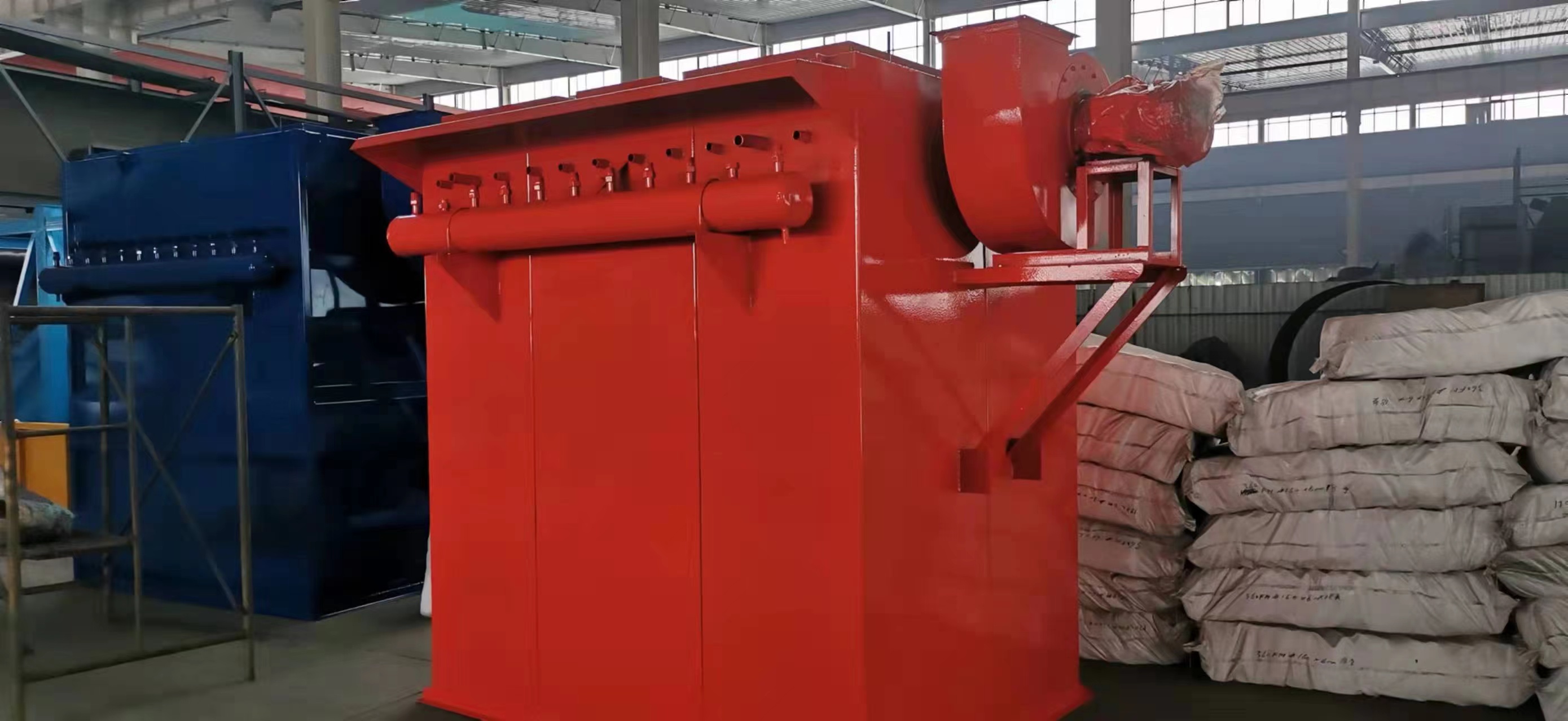 本實(shí)用新型提供一種粉塵除塵器,包括原氣室,所述原氣室上方連通有凈氣室,下方連通有灰斗,所述原氣室外壁的下端設有進(jìn)風(fēng)口,所述進(jìn)風(fēng)口與原氣室之間設有預過(guò)濾器,所述原氣室內設有若干連通于凈氣室的褶皺式濾筒,所述凈氣室通過(guò)管道連接有出風(fēng)口,所述出風(fēng)口與原氣室之間設有消音器;所述原氣室上設有連接褶皺式濾筒的脈沖清灰裝置,所述脈沖清灰裝置連接于控制器,位于原氣室上設有連接于控制器的壓差計。本實(shí)用新型通過(guò)設置脈沖清灰裝置,能夠將褶皺式筒上的積灰清理掉,提高了褶皺式濾筒的過(guò)濾性能;設置消音器,增加了空氣的流動(dòng)路徑,有效地減少了過(guò)濾后空氣排出時(shí)產(chǎn)生的噪音。